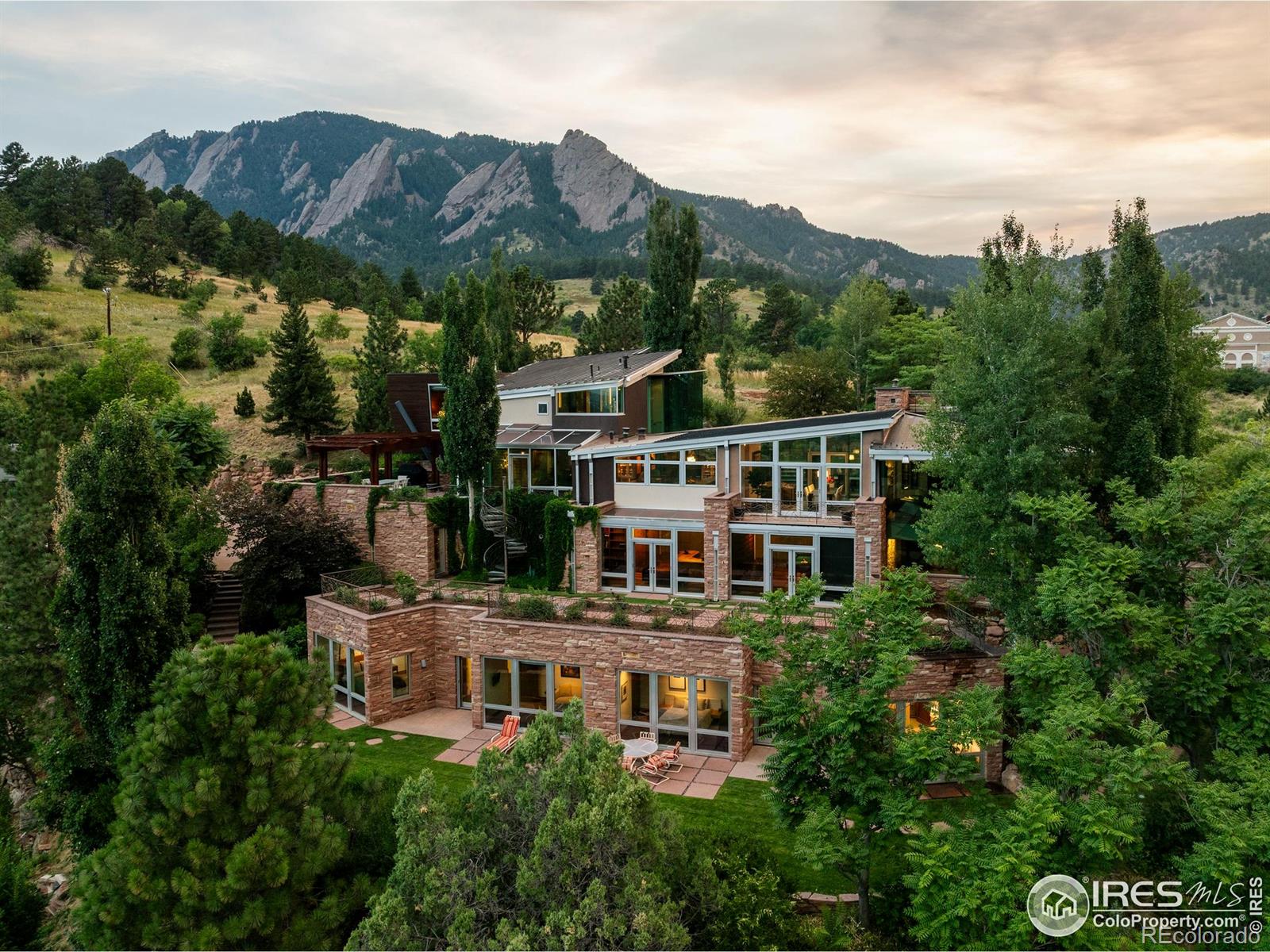 Carved into the slope of Boulder's iconic Flatirons, this architectural residence represents a level of craftsmanship and execution whose true cost far exceeds what could be reproduced today, with replacement economics now well beyond $20,000,000. Homes of this scale and quality are no longer achievable in Boulder. Privately gated at the summit of Bellevue Drive, Boulder's most exclusive residential street, the home commands protected views across Chautauqua Park and the Flatirons. The setting is permanent and private. Spanning over 8,000 square feet, the residence was built without compromise. Flagstone echoing the Flatirons, hand-worked copper, Honduran mahogany, and walls of green sea glass reflect a level of material selection and execution rarely seen today. Architecture shaped by terrain and light, engineered for permanence rather than trend. The scale and quality are best understood in person. A separately sited guest residence under the same ownership may be incorporated by discussion, offering flexibility while allowing the primary residence to stand on its own. Direct access to Chautauqua Park, protected since the 1800s, ensures the surroundings remain untouched. Live privately. Create freely. Own what cannot be rebuilt.